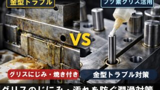 NEWS 金型トラブルの原因とは?グリスのにじみ・汚れ・焼き付きを防ぐ潤滑対策 金型トラブルの原因は「グリス」にあることが多い ダイカスト金型や射出成形金型では、 以下のようなトラブルが発生することがあります。 ・成形品に油汚れが付着する ・金型内部にグリスがにじみ出る ・エジェクタピンの動きが悪く... 2026.03.30 NEWSお役立ち情報フッ素グリース